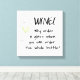 Add humour with this art text design canvas for wine lovers! Great also for a wine business. A glass of white wine is tilted towards the word text design that says " Wine, why order a glass when you can order the whole bottle?" Trendy, funny and humourous, this art will create a smile and comments. Easy to customise. The original art and design is by artist Phyllis Dobbs. The colours are lime green and black. Fully customisable. Contact Phyllis Dobbs if you want this customised for your business or event.