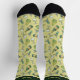 White wine. Bottle, glass, corkscrew and grapes. Custom background colour. Custom top stripe colour. Custom text on each sock.