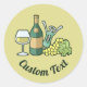 White wine composition. Bottle, glass, corkscrew and grapes. Custom background colour. Custom text.