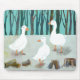 Three white geese in the winter wood illustrated on custom Mouse Pads. ((Contact ujean4791@gmail.com for custom work and/or matching items.))