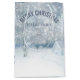 Merry christmas customisable text. White and blue grey tones winter scene in secluded wood and romantic cute house.