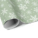 White Winter snowflakes stars snows on sage green Wrapping Paper