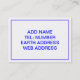 Elegant business card in white with a blue frame. Click the customise button to change the position of the wording as well as the colour and font of the letters.