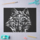 White Wolf Head on Black Tissue Paper