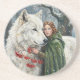 White Wolf Redhead Druid Winter Berries Fantasy Ar Coaster