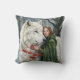 White Wolf Redhead Druid Winter Berries Fantasy Ar Cushion