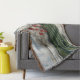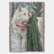 White Wolf Redhead Druid Winter Berries Fantasy Ar Throw Blanket