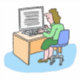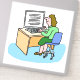Office employee illustration. Drawing of an office worker at her desk. Sticker showing an White woman working in an office at her computer.