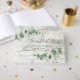 Beautiful delicate eucalyptus foliage wedding design. Part of a modern collection. white wood backer