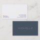 Professional white card with grey-violet background and text. Elegant design for business professionals and creative industries. Premium or luxury card stock recommended.