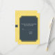 White and yellow polka dot design.The design features white polka dots on yellow and a charcoal grey rectangle in the middle. RSVP cards.