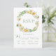Pretty yellow and white Daffodil floral wreath done in soft watercolors are perfect for this spring and summer wedding “RSVP” wedding reminder. Pretty coordinating green script and typography. Food selections included and can be customised or removed. Customise as needed. To customise click the "customise further" link and use the design tool to make changes. Many different paper selections, as well as paper shapes. 100% customer satisfaction at “Zazzle”