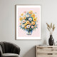 White yellow watercolor daisy bouquet poster