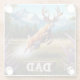 Big, beautiful whitetail buck jumping through a marsh, with a gorgeous mountain scene and a wooden sign with DAD painted on it. Great for Father's Day or Dad's Birthday