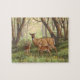 Whitetail Deer and Cute Twin Fawns In Spring Jigsaw Puzzle