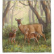 A mother white-tailed deer and her adorable twin fawns in the spring forest.