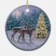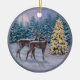 Whitetail Deer & Christmas Tree Winter Scene Ceramic Tree Decoration