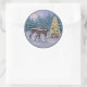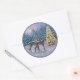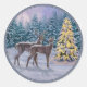 Whitetail Deer & Christmas Tree Winter Scene Classic Round Sticker