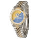 The watch is very nice, the picture is great and the watch looks like quality. The only problem I am having with it is that it is a little too large, and I also can't figure out how to open the clasp. No directions came with it. Very good. The printing is perfect and the watch keeps good time.