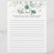 This who am I gold floral bridal shower game is a perfect activity for a simple bridal shower celebration. This artistic design features hand-drawn gold floral and watercolor eucalyptus green foliage, inspiring natural beauty.