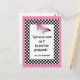 Whimsical digital art features pink background, black and white chequerboard frame, watercolor pink butterfly, and centre quote from Alice in Wonderland which reads: "Who in the world am I? Ah, that's the great puzzle."