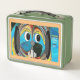 This is a standard metal lunchbox that appears to work just fine. We designed this box ourselves with an uploaded photo and custom text on the front and back. It looks absolutely beautiful except the front of the lunchbox is not centered like it shows in the photo. The print borders don't align with the inset flat part of the box where the preview photo online showed it perfectly centered in there. The back looks nice and centered though.