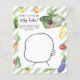 "Locally grown baby is on the way". Celebrate with this watercolor vegetable themed baby shower party! Watercolor cucumber, onion, eggplant, zucchini, yellow and red tomatoes, radishes, carrots, hot pepper, sweet yellow pepper, peas and cabbage, broccoli and beetroot on a cutting board. Watercolor organic harvest.
