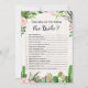 Rustic fiesta bridal shower game featuring watercolor succulents, pink roses and modern calligraphic lettering.