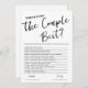 Who knows Couple best Simple Bridal Game - here is the one of the common bridal shower game to entertain your guests . As it is prepare as a template you can personalise it according to your wishes/needs.