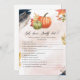 Designed for our Little Pumpkin Baby Shower collection, this customisable Who Knows Daddy Best Game Card Card features blush pink background, green & orange pumpkin, rose gold glitter text & gold leaves with handwriting fonts. Matching items available.