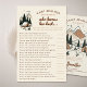 An elegant, modern and fun camp bachelorette party game, "who knows her best", for a bachelorette weekend with a camping theme in the woods, mountains etc., featuring minimalist drawings of a camping scene in the mountains in a light beige, terracotta and cream, earthy colour scheme. A beautiful, earthy and perfect choice for a bachelorette weekend of fun camping, hiking or anywhere outdoors, in a soothing, soft, outdoors natural, organic colours and a minimalist modern style.