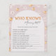 Who Knows Mummy Best Fall Baby Shower Game Card