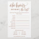 Who Knows Mummy, Terra Baby Shower Paper Game Card