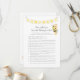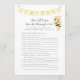A fun game for the baby shower is the Who knows mummy-to-be? game. This game features a yellow banner at top and a teddy bear with a bee. On the reverse is a boy teddy bear leaning on a honey barrel watching a honey bee with templates.