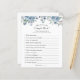 Bridal shower game card featuring watercolor greenery and blue flowers. A fun way to interact with shower guests.