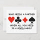 Wry suggestive and sarcastic attitude comes alive on any of these gifts featuring the four card suits and asks the following question: "Who Needs A Partner When All You Need Is A Good Hand?" Gifts for all bridge players who wish that they did not need a partner to play bridge and who understand that, sometimes, at the bridge table, it just takes a good hand to win!
