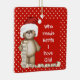 This is a lovely ornament, and great that you personalise the back with details of birthday, weight, etc.. My only tiny disappointment is the "My First" doesn't stand out very well on the background. More than happy with the printing of the photo and the writing on the back.