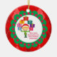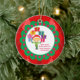 This will be a keepsake for Grandma & Grandpa of all times! It's has a Christmas elf wearing a Santa hat holding presents around his head. It has "Who needs Santa when you have Grandma & Grandpa" on the centre white circle. The outside of circle is a red pattern. There's a green scalloped border around centre white circle. It has a red plaid background. Check out the other family member ornaments in our store.