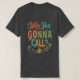 This t-shirt design playfully references a pop culture classic with the question "Who You Gonna Call?" in a vibrant multicolor scheme. The design avoids images of people, letting the iconic question stand out on its own. Each word could be a different colour, adding a touch of whimsy and intrigue. This shirt is perfect for fans of the franchise or anyone who enjoys a touch of mystery and a dash of humour in their wardrobe.