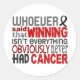 "Whoever Said That Winning Isn’t Everything Obviously Never Had Cancer" (Author Unknown). Share this empowering sentiment while advocating Melanoma awareness with our line of inspiring t-shirts, apparel, and merchandise featuring a variety of text fonts and black Melanoma support ribbon. Perfect gift idea for any Melanoma warrior or survivor! Please note that the quotes we incorporate into our designs are either ‘Author Unknown’ or we have obtained permission from the copyright owner.