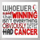 "Whoever Said That Winning Isn’t Everything Obviously Never Had Cancer" (Author Unknown). Share this empowering sentiment while advocating Oral Cancer awareness with our line of inspiring t-shirts, apparel, and merchandise featuring a variety of text fonts and red and white Oral Cancer support ribbon. Perfect gift idea for any Oral Cancer warrior or survivor! Please note that the quotes we incorporate into our designs are either ‘Author Unknown’ or we have obtained permission from the copyright owner.