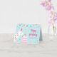 This fun birthday card features a cute whimsical party llama design with a llama eating a birthday cake. There are candles, bunting and stars and confetti on an aqua background. Personalise the front with a name and the inside with your special greeting message.