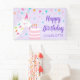 This fun birthday party banner features a whimsical llama design with birthday cake and bunting design on a purple background with stars and confetti. Personalise it with a name. Matching products are also available. Please visit our store or view our collection pages to see the full range.