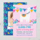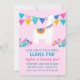 Invite guests to a whole llama fun celebration with this colourful floral birthday photo invitation for girls. A cheerful llama wearing a rainbow bunting banner stands among desert flowers on a bright pink background, with bold fuchsia and teal "Llama Fun" lettering. The back features a playful cactus plant pattern with a photo space and balloon accent for a fun two-sided design. All text is fully customisable to suit your celebration.