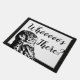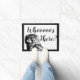 Owl doormat in black and white with the phrase "Whooooo's There?" in black script.