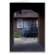 a picture of a door with crab pots in front of it, picture through a alley