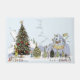 This magical illustration depicts a classic Whoville Christmas celebration centered around the annual Christmas Tree Contest! The scene is snowy and festive, featuring a massive, fully decorated Christmas tree next to the redeemed Grinch (wearing a scarf) and his loyal dog, Max. Smaller, creatively decorated trees line the way to the whimsical Judging Stand, where the Whos gather to decide the winner. This detailed graphic perfectly captures the communal joy and spirit of friendly holiday competition!