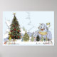 This magical illustration depicts a classic Whoville Christmas celebration centered around the annual Christmas Tree Contest! The scene is snowy and festive, featuring a massive, fully decorated Christmas tree next to the redeemed Grinch (wearing a scarf) and his loyal dog, Max. Smaller, creatively decorated trees line the way to the whimsical Judging Stand, where the Whos gather to decide the winner. This detailed graphic perfectly captures the communal joy and spirit of friendly holiday competition!