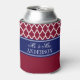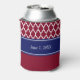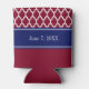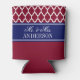 Wht Moroccan #4 CB Navy Name Monogram Wedding Can Cooler