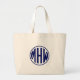 Wht Navy 3 Initial in a Circle Monogram DIY BG Large Tote Bag